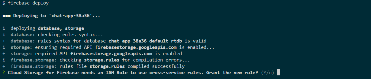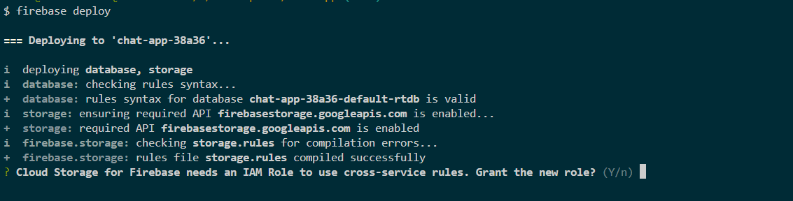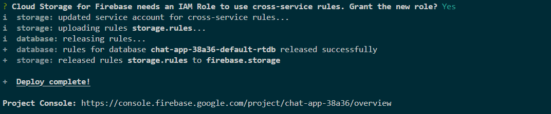 엔터를 누르게 되면 룰이 설정되고, firebase.json과 storage.rules 파일이 생성된다.