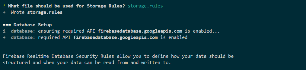 기본 제안된 storage.rules 파일을 사용하려면 그냥 Enter를 누르면 된다.
