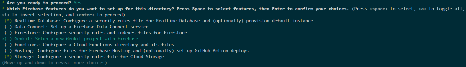 "이 폴더에 대해 어떤 Firebase CLI 기능을 설정하시겠습니까?