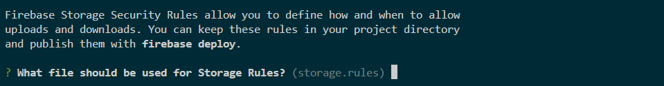 어떤 파일을 Storage 규칙으로 사용할까요? (기본값: storage.rules)"