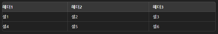 파이프(|)와 하이픈(-)을 사용하여 표를 작성.