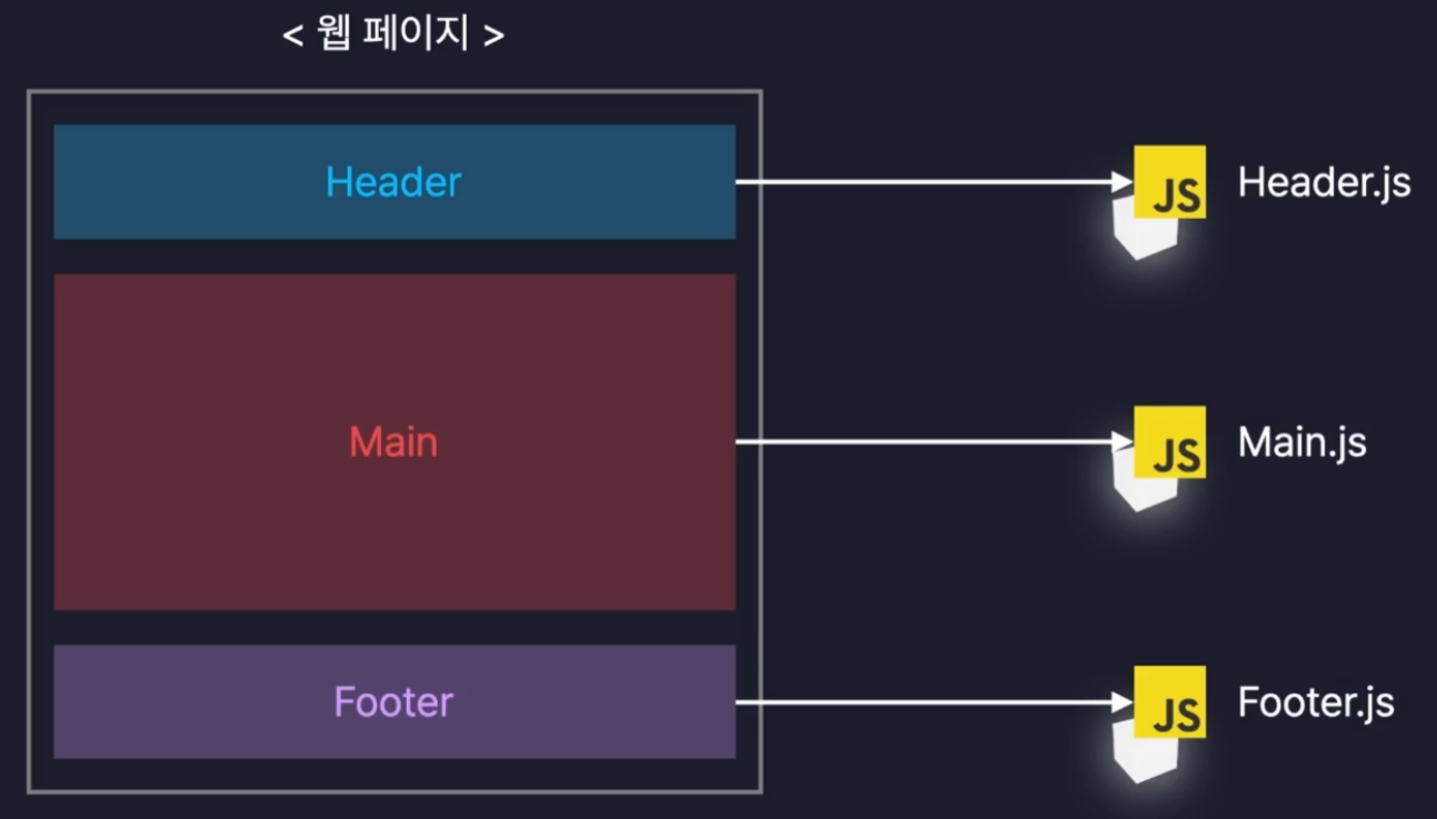 컴포넌트를 자바 스크립트 파일로 모듈화 = 중복 코드를 제거