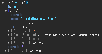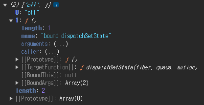 state를 출력해보면 아래와 같이 0번째 index의 값이 off