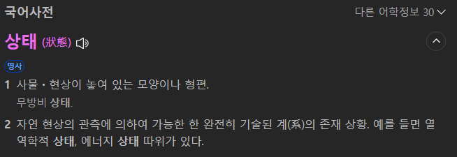 의 정의와 같이 모든 사물과 현상에는 상태가 있습니다.