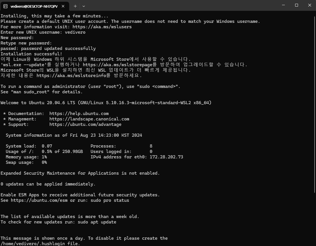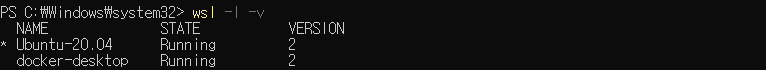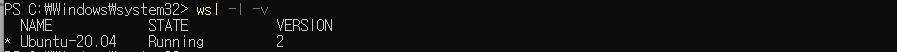 wsl 명령어를 입력합니다.아래와 같이 출력되는지 확인합니다.
