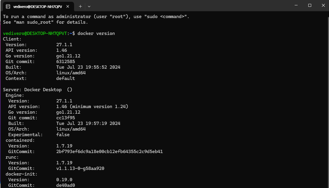 커맨드 창에서 docker version 을 입력하여, docker version이 표시되는지 확인합니다.