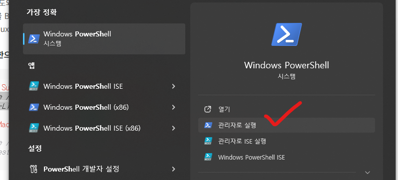 Windows PowerShell을 관리자 권한으로 실행합니다.