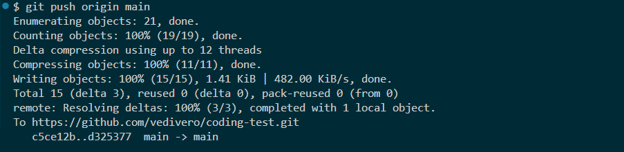 로컬 저장소에서 원격 저장소로 성공적으로 푸시되었다.
