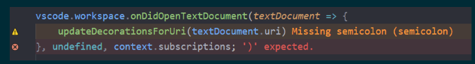 실시간으로 소스 코드의 에러를 해당 라인에 표출합니다.