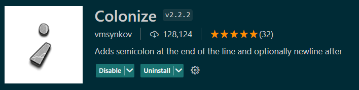 Ctrl+s(저장)을 하면 자동으로 소스 코드 끝 부분에 ;