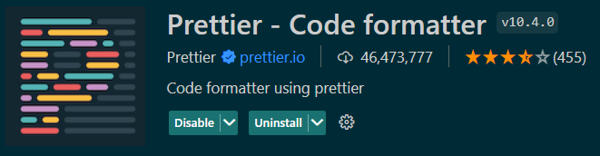 Extension에서 Prettier 검색 후, 위의 Extension을 Install 후,