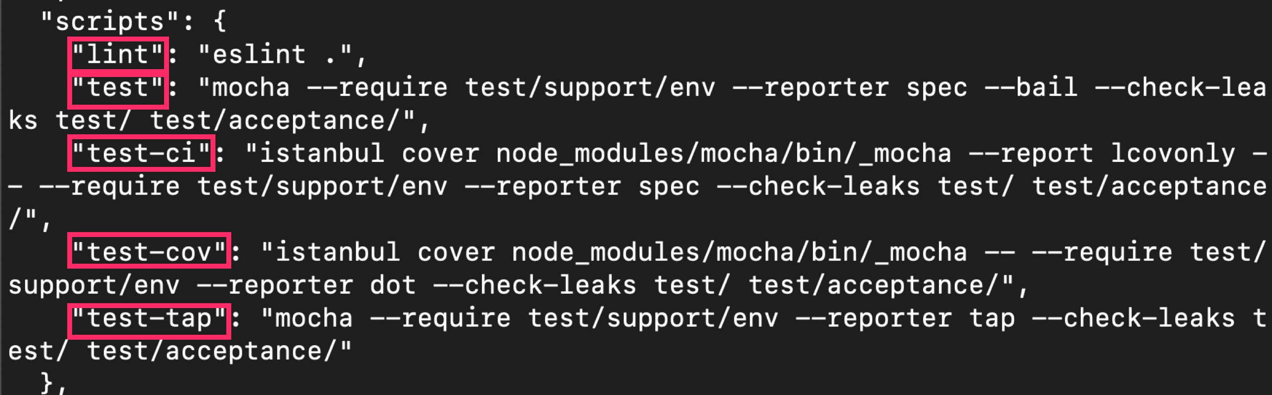 잠깐 express 패키지의 package.json 파일의 scripts 필드를 예시로 보면