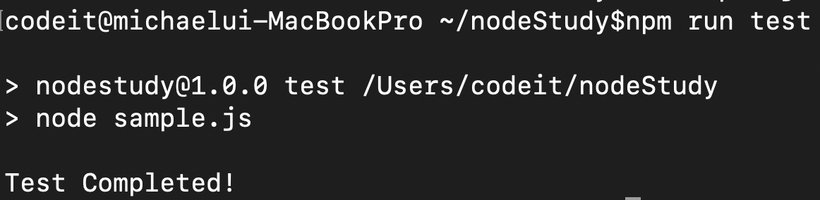 'node sample.js'가 실행되고 그 결과가 잘 출력됩니다.