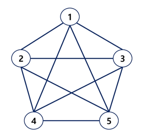 - 완전 그래프에 속한 임의의 두 정점들은 서로 인접해 있다.