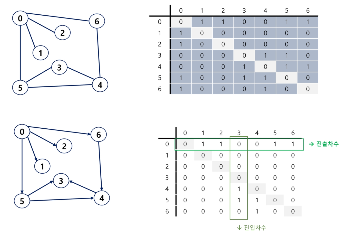 - 행 번호와 열 번호는 그래프의 정점에 대응