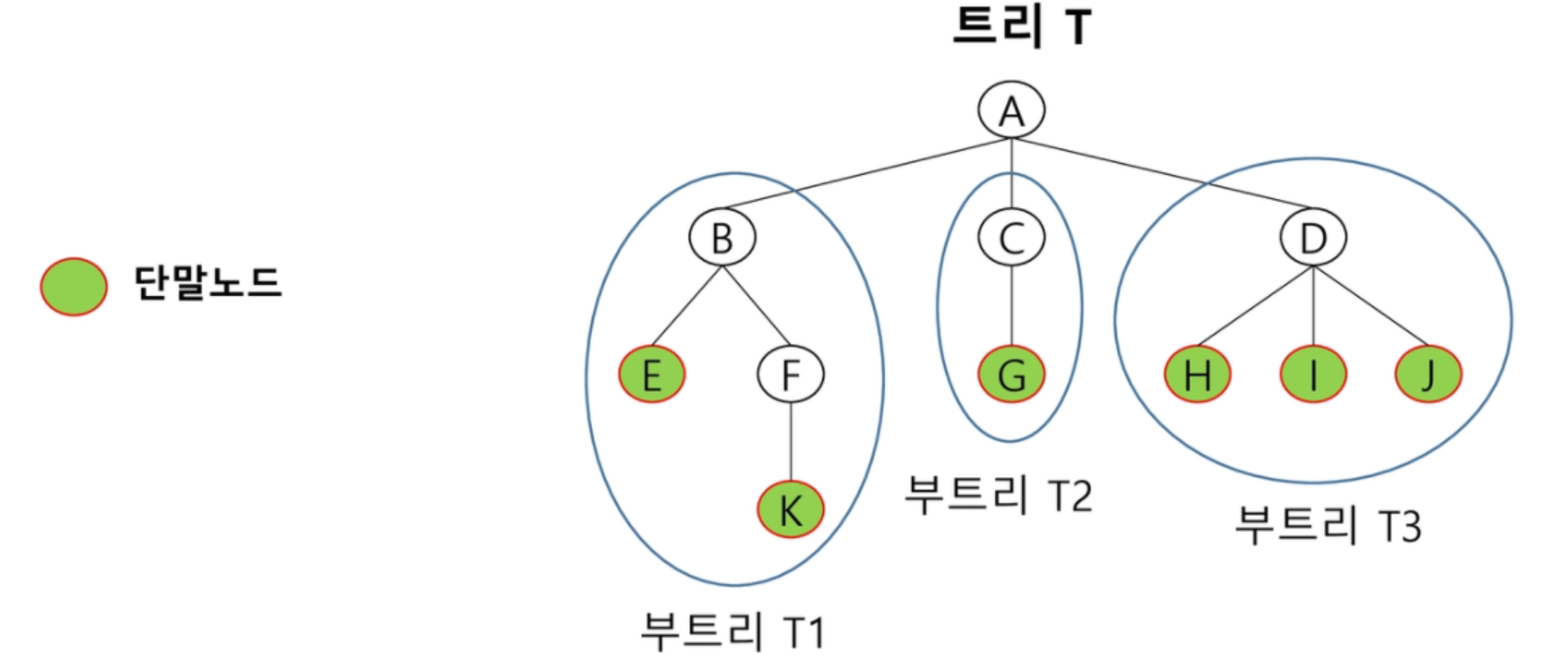 분리 집합들은 하나의 트리가 되며 루트의 부 트리(subtree) 라고 한다.