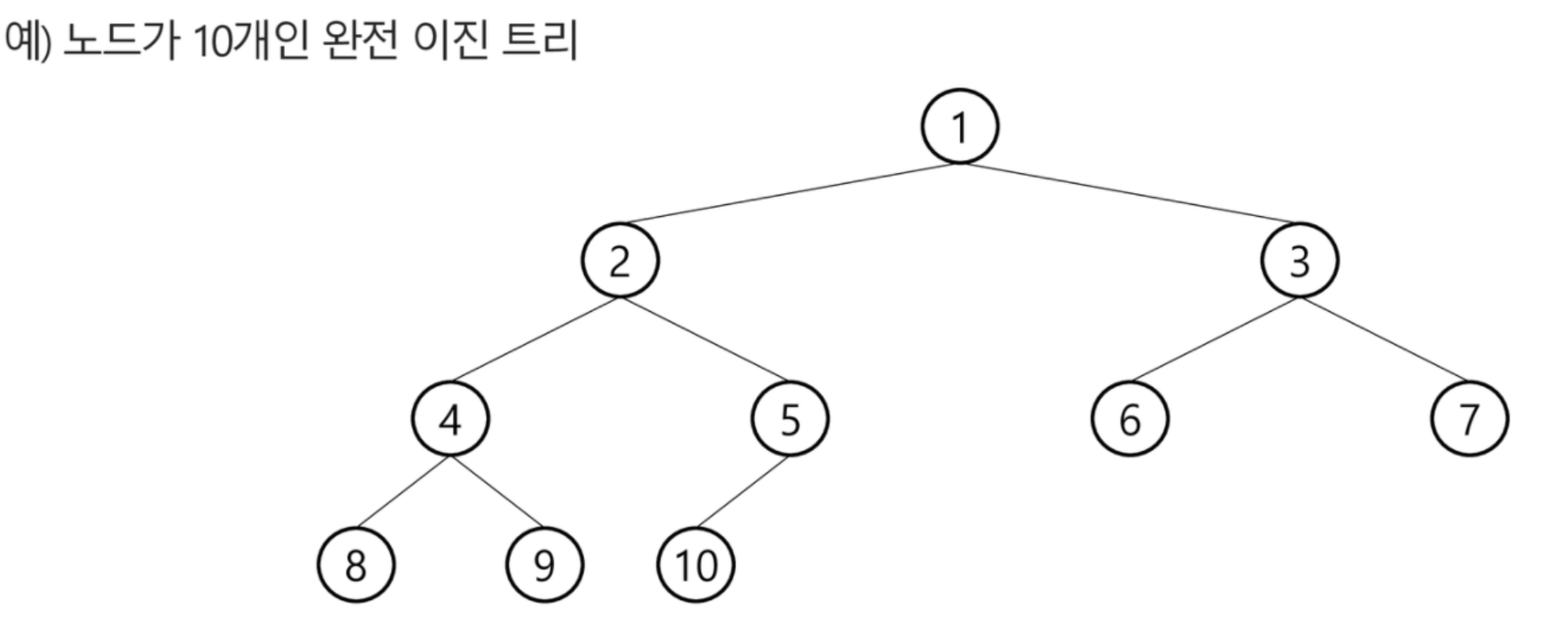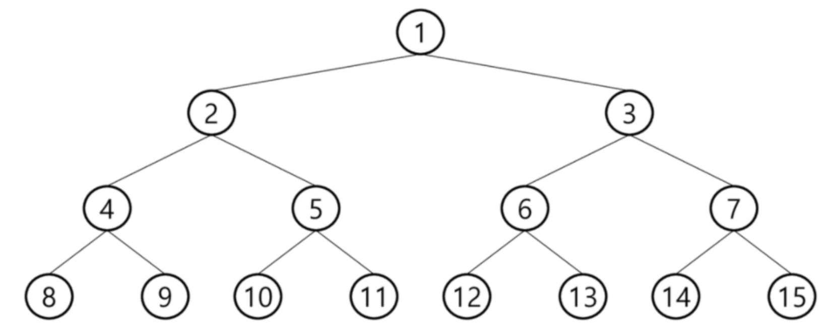 포화 이진 트리의 노드 번호 1번부터 n번까지 빈 자리가 없는 이진 트리