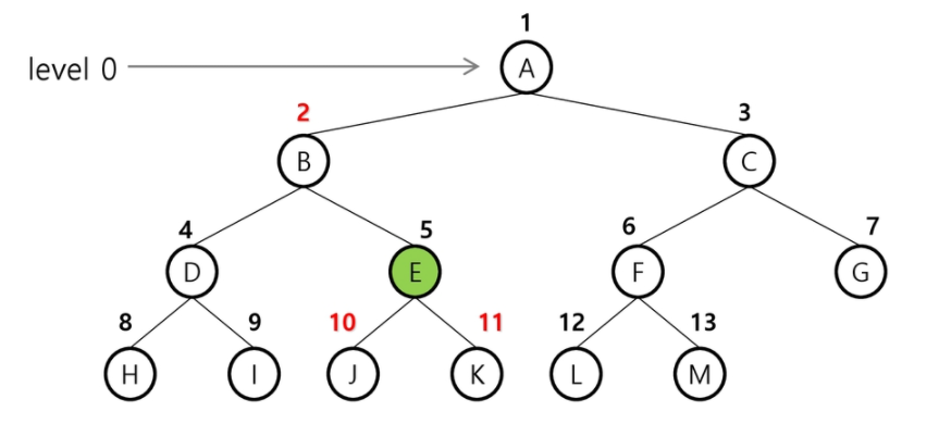 - 루트를 1번으로 하여 정해진 위치에 대한 노드 번호를 가짐