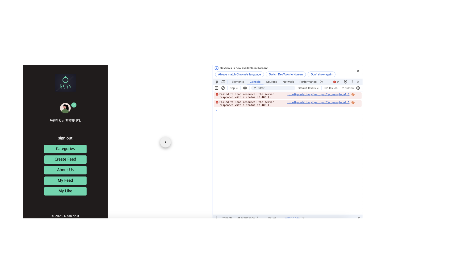 사용자가 개발자 도구에서 직접 localStorage.clear()를 실행하거나, 브라우저가 데이터를 자동 삭제함.Supabase가 로그아웃할 때 필요한 세션 정보를 찾지 못해 오류 발생.
