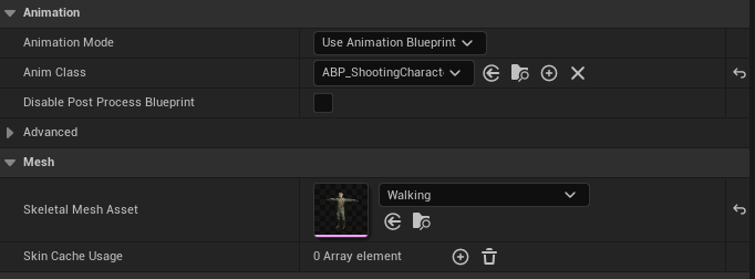- Skeletal Mesh 설정: Walking