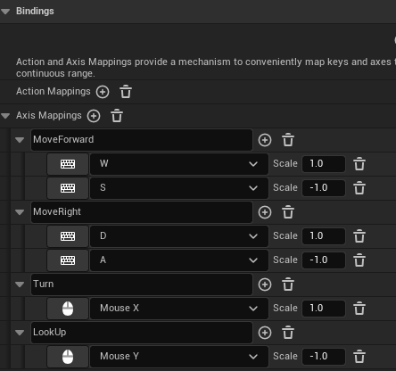 - 각 키(WASD, Mouse X/Y)와 Scale 지정