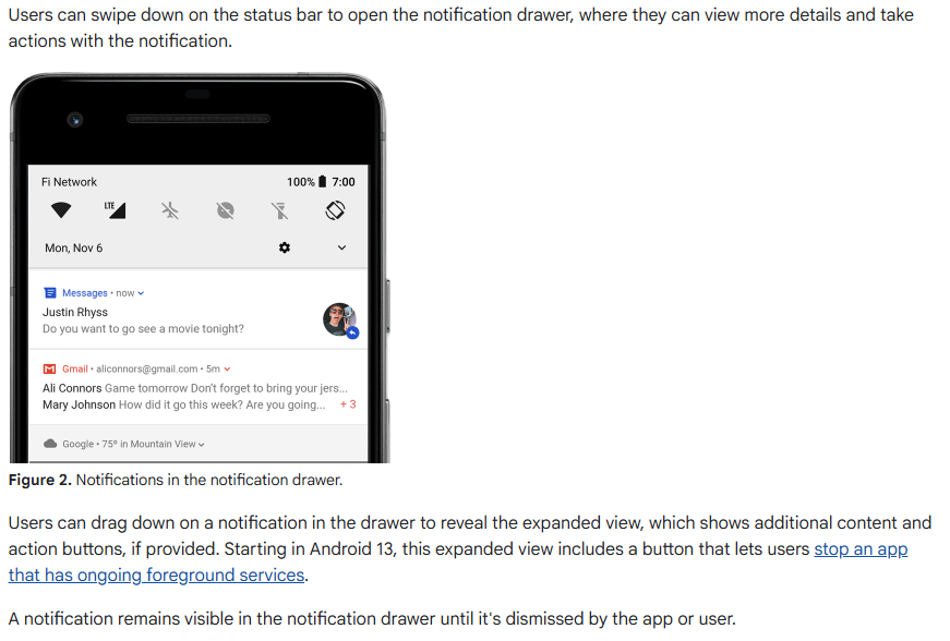 notification drawer 에 존재하는 notification 은 유저가 닫기 전까지 계속 띄워진다.