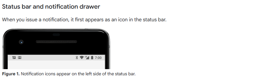 status bar 는 디바이스 최상단에 존재하는 바이며, 왼쪽에 아이콘으로 notification 이 나타난다.