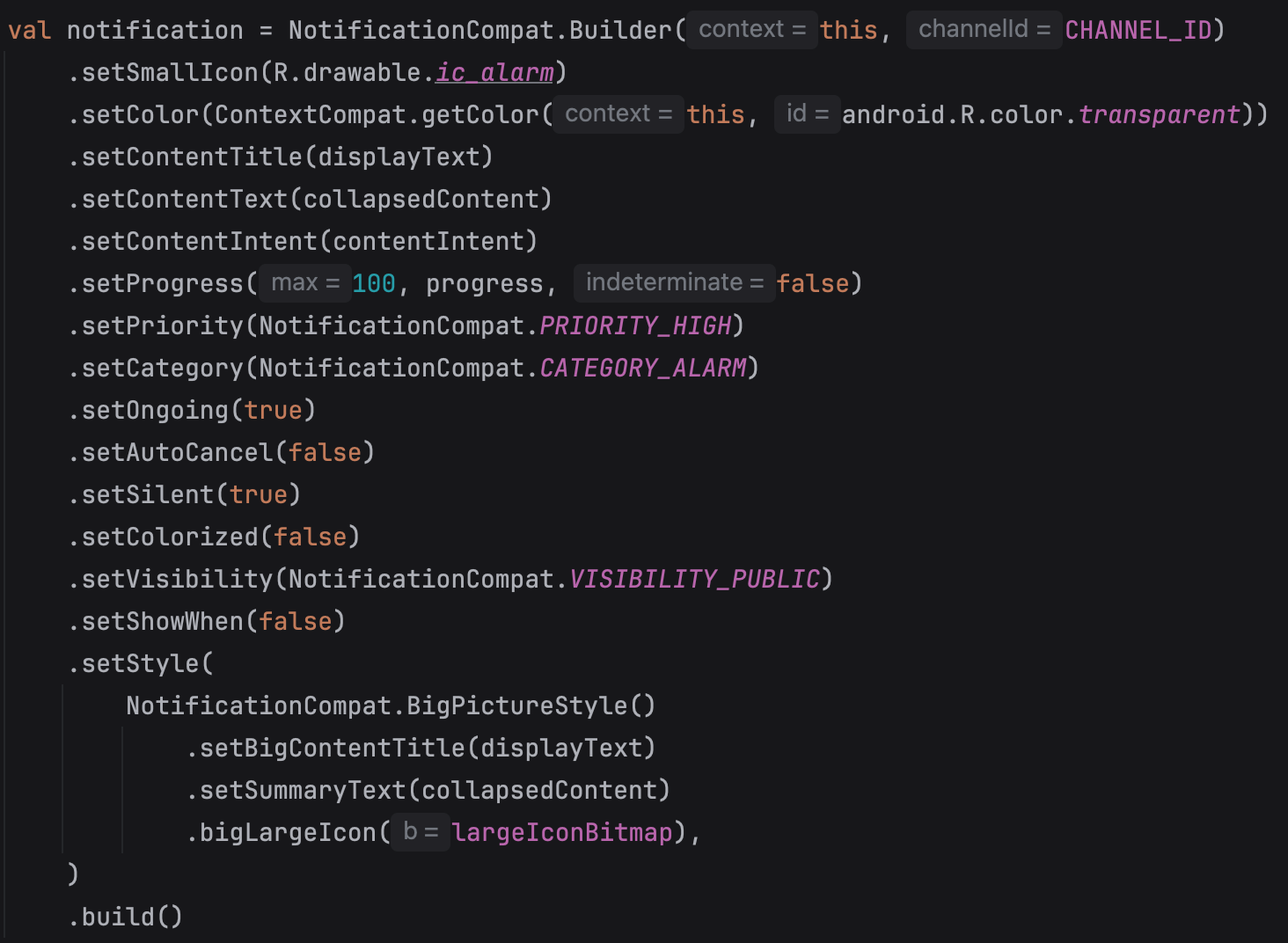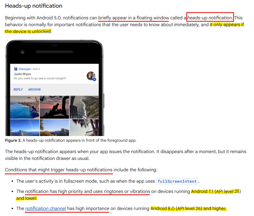 아래 코드는 One UI 8 이전 버전 또는 Android 16 버전의 타 제조사 기기에서 Heads-up 알림이 나타나지 않는 코드다.