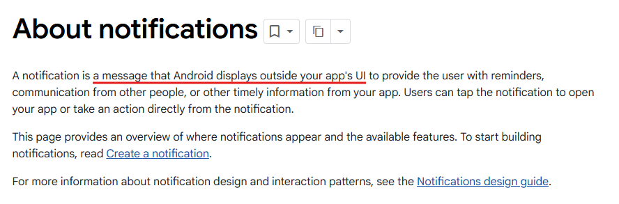 Notification 은 앱 UI 외부 디스플레이에 해당 앱 정보를 유저에게 나타내는 메시지다.