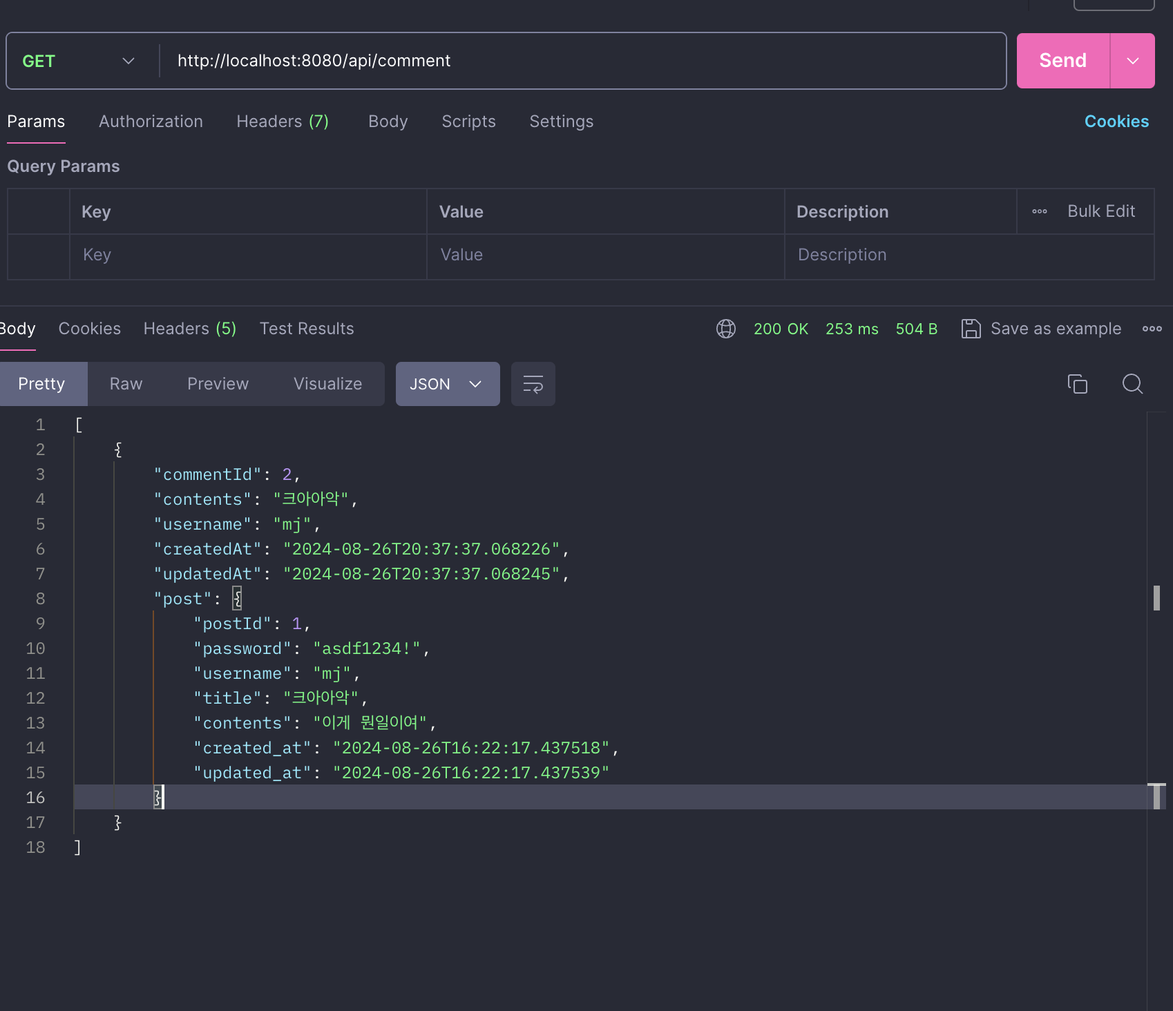 Post entity와 Comment entity를 양방향 매핑하면서 Postman으로 Post나 comment에 get요청을 하면