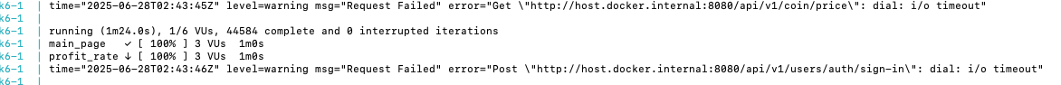 PortCoin 프로젝트의 부하테스트중 마지막 부분에서 request fail i/o timeout문제가 발생하였습니다.