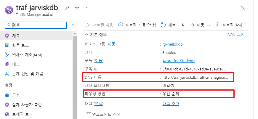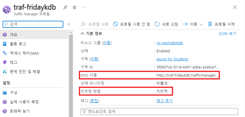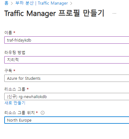 프라이데이 서비스를 위한 traffic manaer 프로필 배포