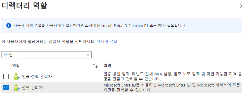 역할 추가 및 전역 관리자 설정