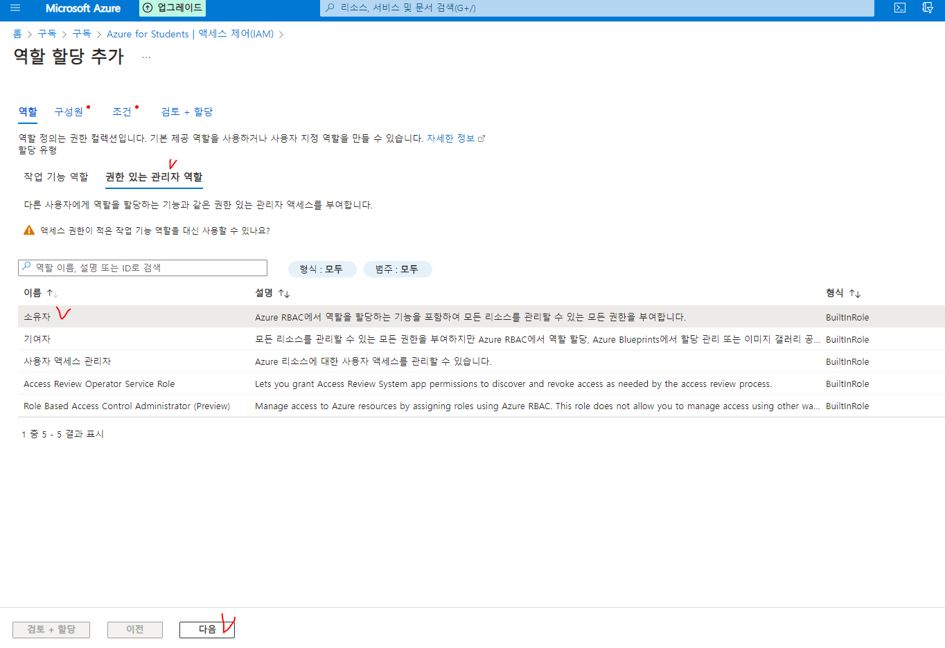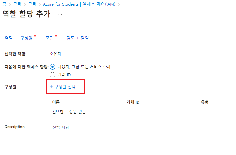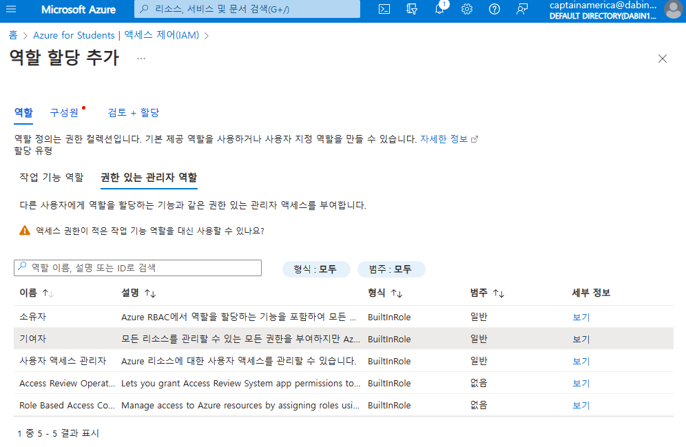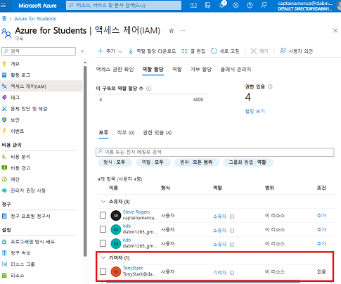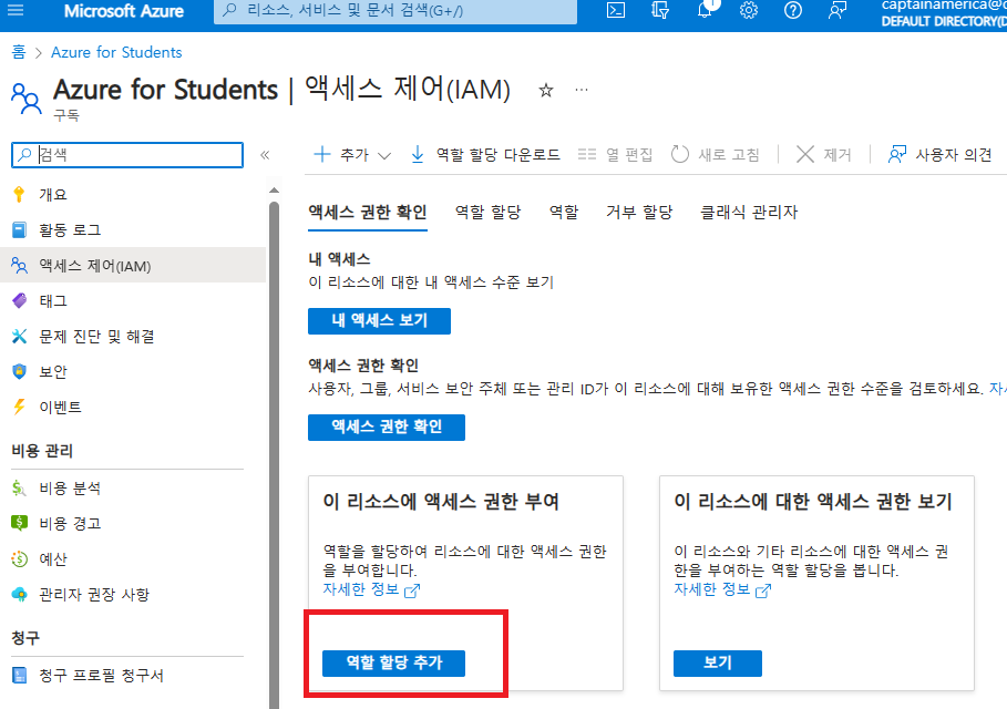 엑세스 제어에서 역할 할당 추가하기