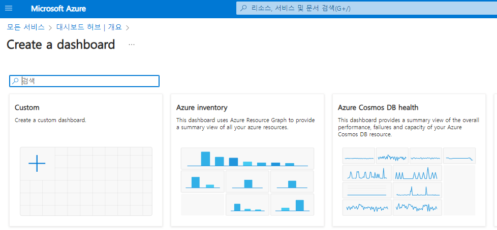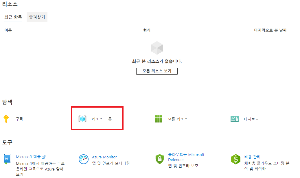 신규 리소스 이동에서 신규 리소스 생성 버튼을 눌러 이동시킨다