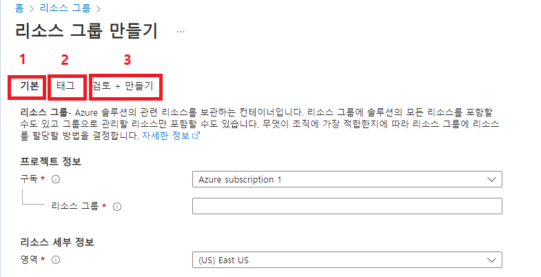 -리소스 그룹과 리소스의 위치가 다를 수도 있다