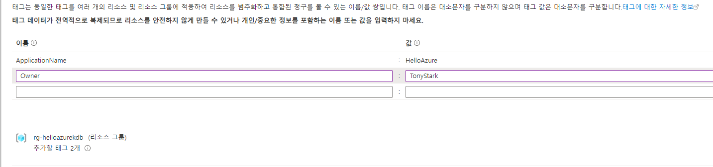 -리소스와 리소스 그룹의 이름은 변경 못함