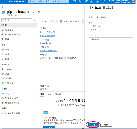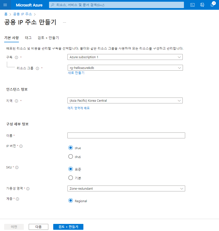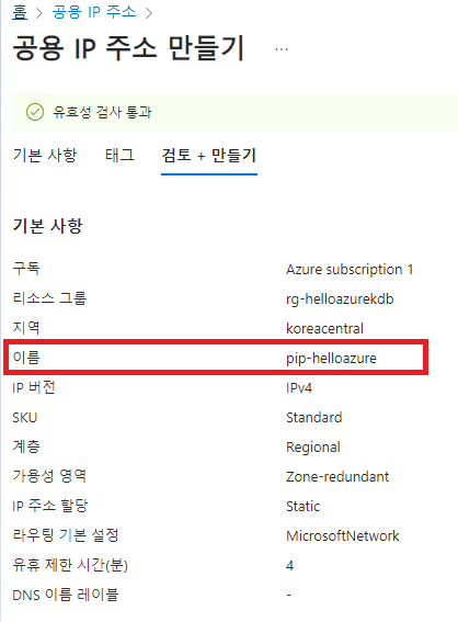 이름을 부여하여 공용 ip주소 생성