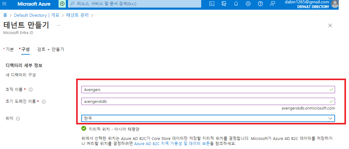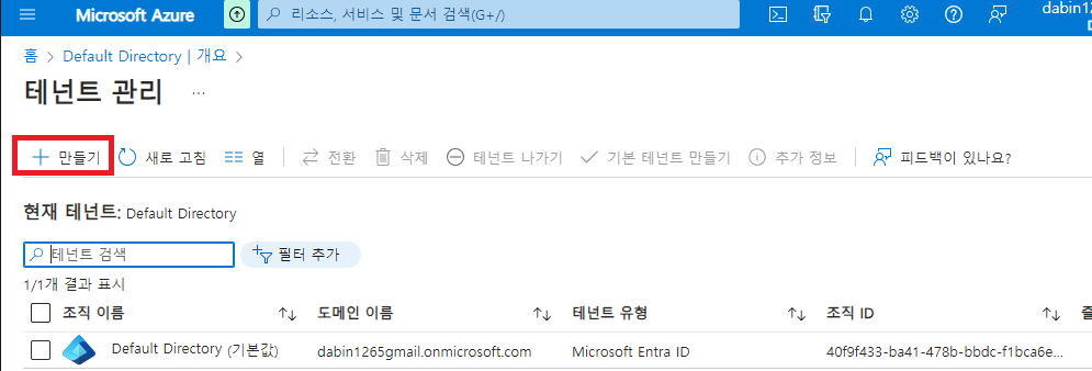 기본 디렉토리 라는 제거할 수 없는 MS Entra ID테넌트가 만들어 진다