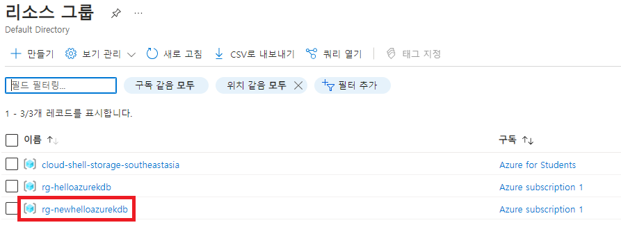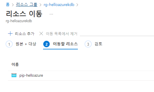-> helloazurekdb를 newhelloazurekdb 로 이동