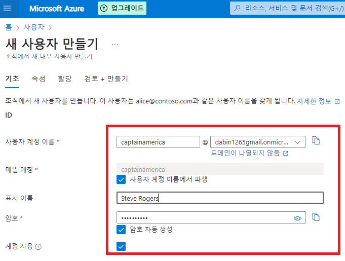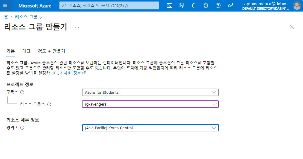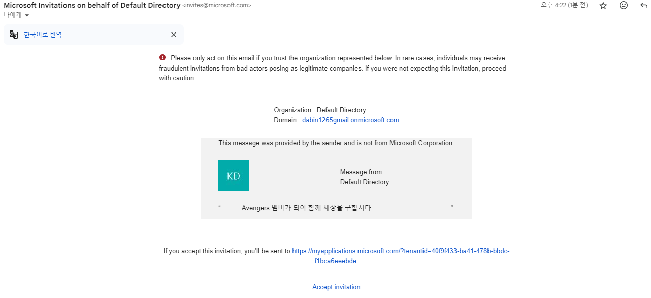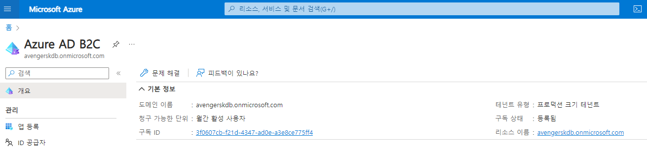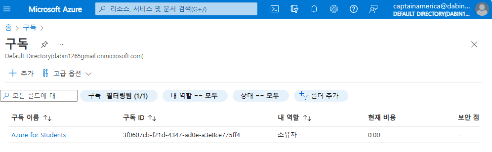 구독 단위로 테넌트를 연결해 리소스 관리 및 인증을 조직의 사용자에게 제공하기 위해 별도 도메인 등록이 없을 경우 azure계정으로 사용하는 ID를 하위 도메인으로 xxxxx.onmicrosoft.com으로 만들어짐