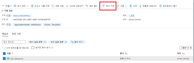 태그안 리소스 목록 확인