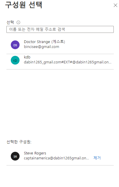 "구성원" 선택