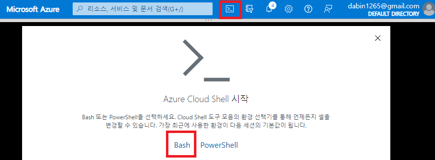 bash로 선택하여 스토리지 생성