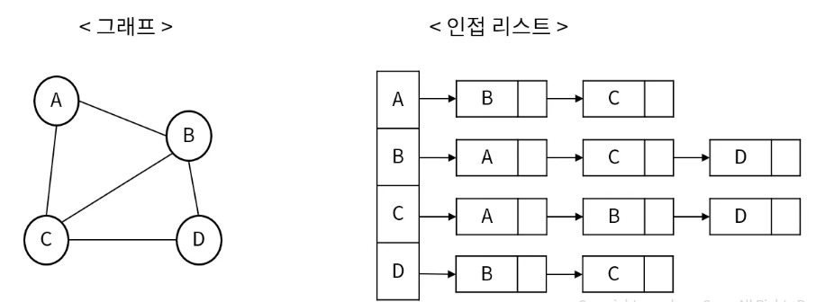 - 연결된 정점간의 관계를 표현할 수 있는 자료구조