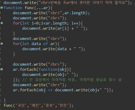 위의 코드는 func의 값들을 하나의 배열로 받아 각각 하나씩 출력하는 기능을 해준다. 4가지 방법으로 해줄 수가 있다.
