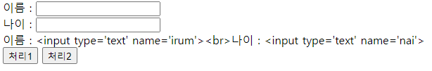 🎇위의 사진을 보면 이름 : <input type='text' ~~~>로 출력되어 태그가 적용되지 않고 텍스트 값으로 같이 출력된 것을 볼 수 있다.