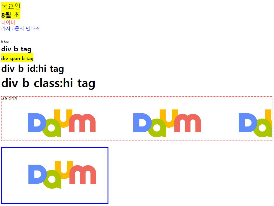div, b{font-size: 8px;} /* div와 b에 걸려*/