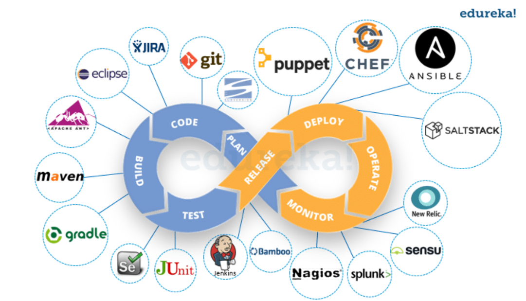 이런 귀찮은 작업을 해결하기위해 CI/CD라는 개념이 나왔다. 아래 이미지는 서비스를 개발하고 운영할때의 과정이고 흔히 devops라고 부른다.