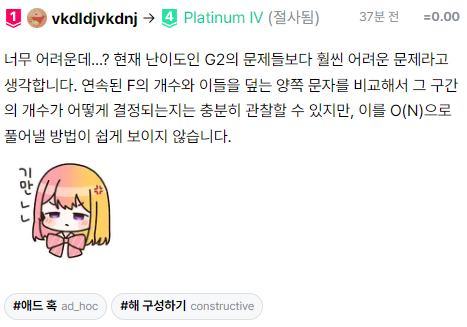 그런데 솔직히 G2보단 어려운 듯. 그래서 P4 줘버렸다. 문제 운이 없었다. 문제 선정할 때 푼 사람의 수도 적용해야 하나 심각하게 고민 중이다.
